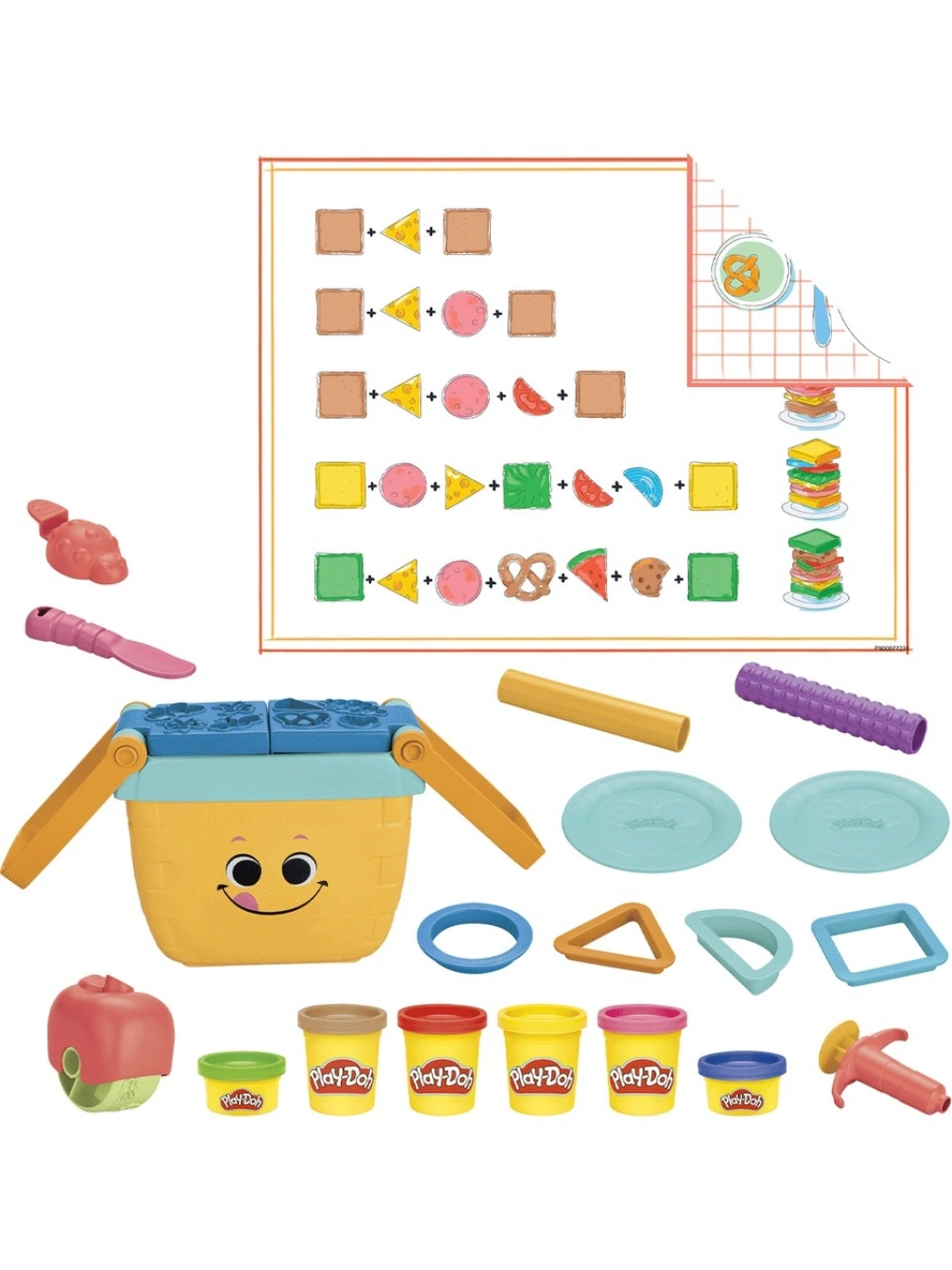 Piknik Şekilleri Başlangıç Seti, çocuklar için her zaman mükemmel bir piknik setidir! 12 başlangıç aleti, 6 Play-Doh rengi ve saklama kutusu olarak kullanılabilecek bir oyuncak piknik sepetiyle birlikte sunulur.